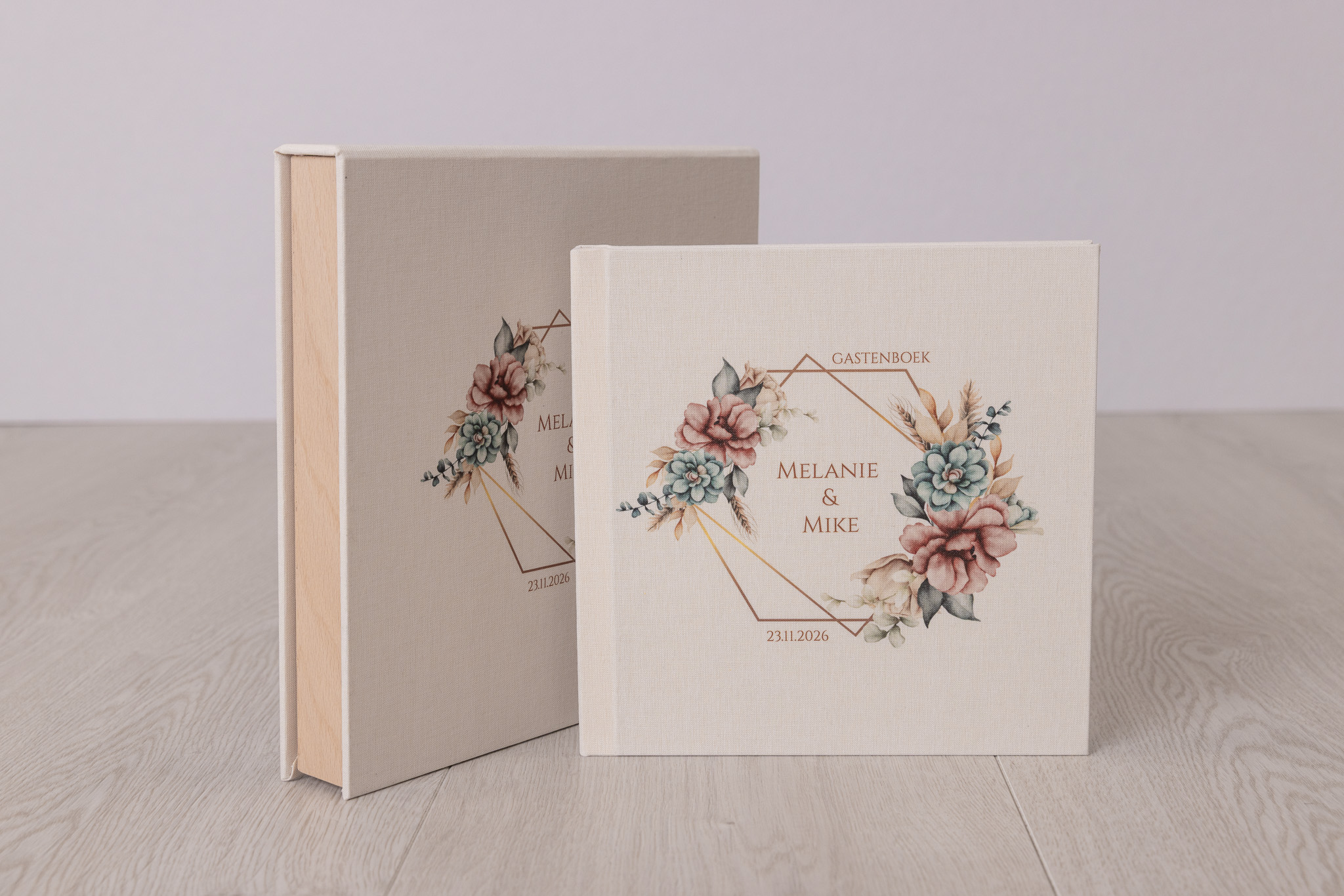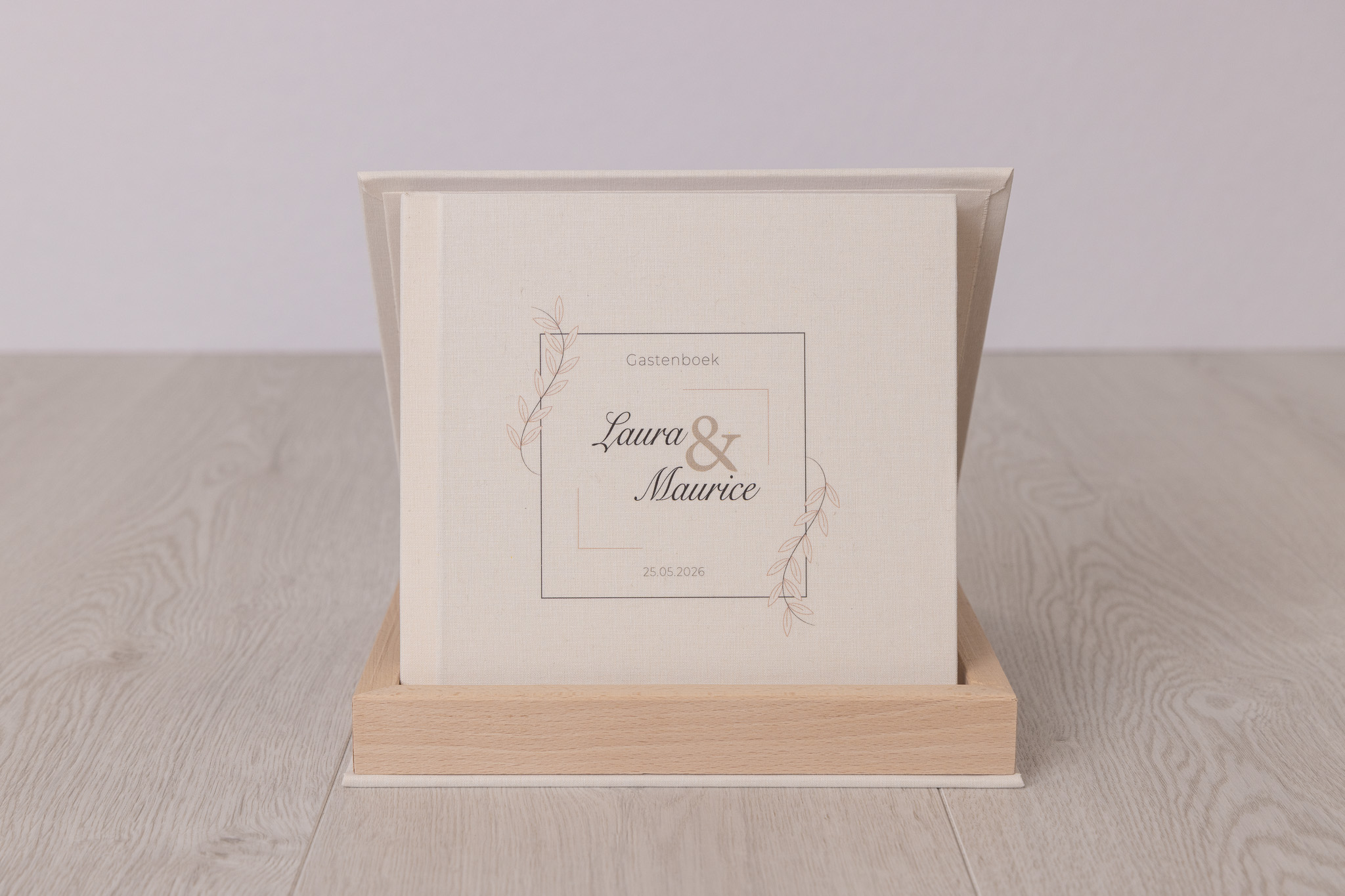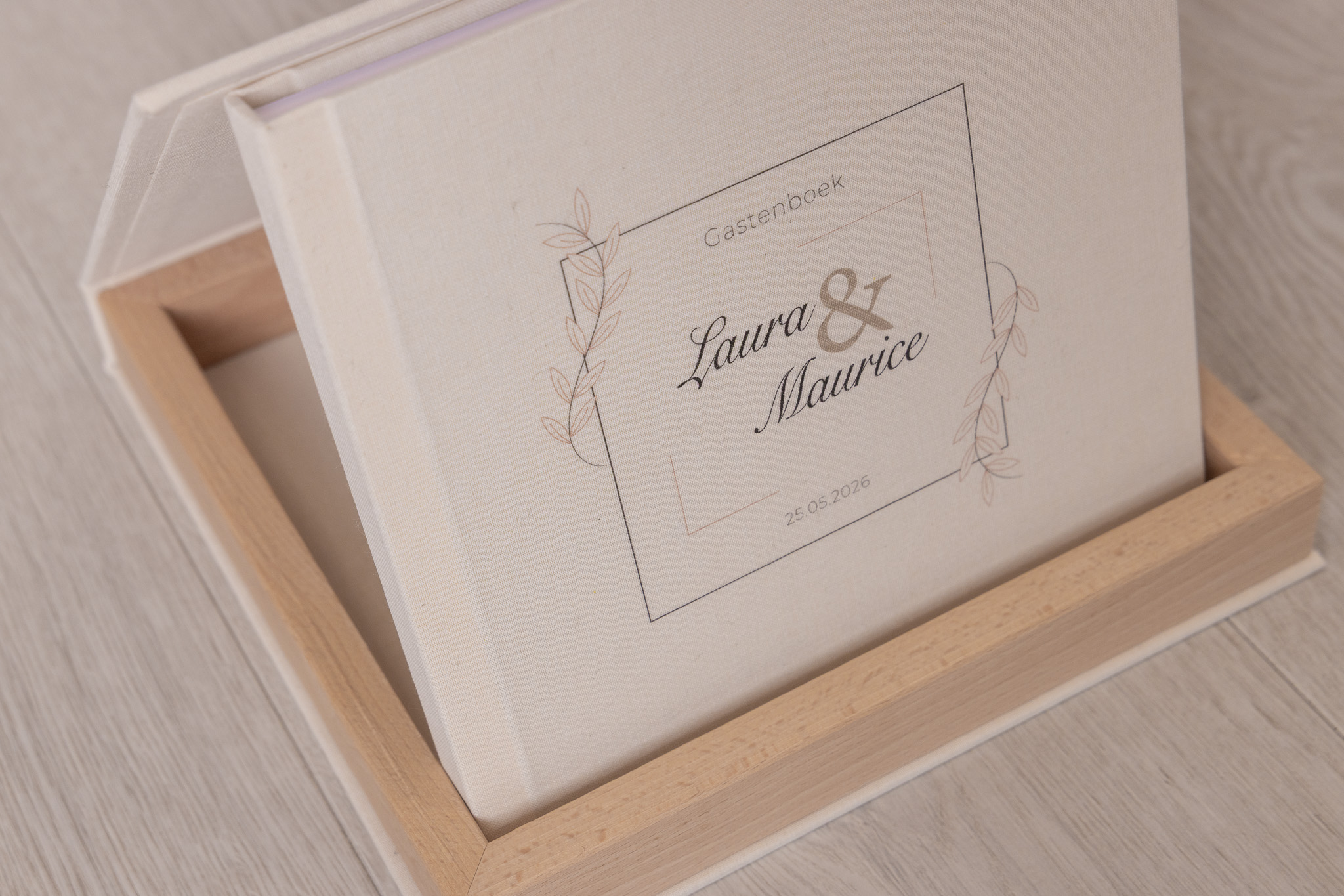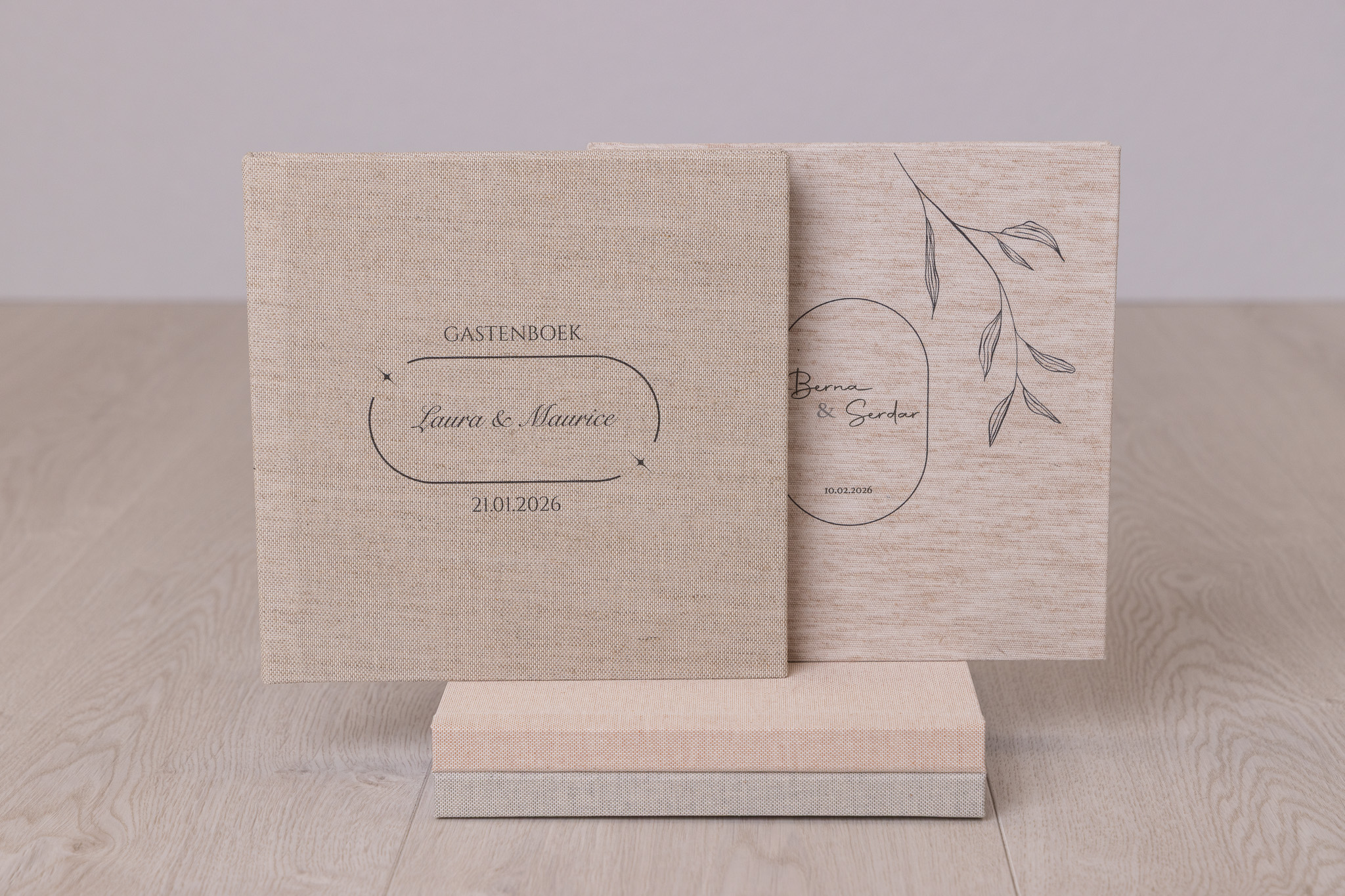 Ons gastenboek is ook beschikbaar voor bulkbestellingen, speciaal voor zakelijke klanten en organisaties. Verkrijgbaar in luxe linnen of stijlvol kunstleer en geleverd met een bijpassende luxe box, zodat elk exemplaar veilig en elegant wordt gepresenteerd. Dankzij de stevige binding en hoogwaardige pagina’s ligt het boek comfortabel open en blijft schrijven een plezier. Perfect voor evenementen, relatiegeschenken of projecten waarbij meerdere gastenboeken nodig zijn, en volledig te personaliseren met jullie eigen ontwerp.