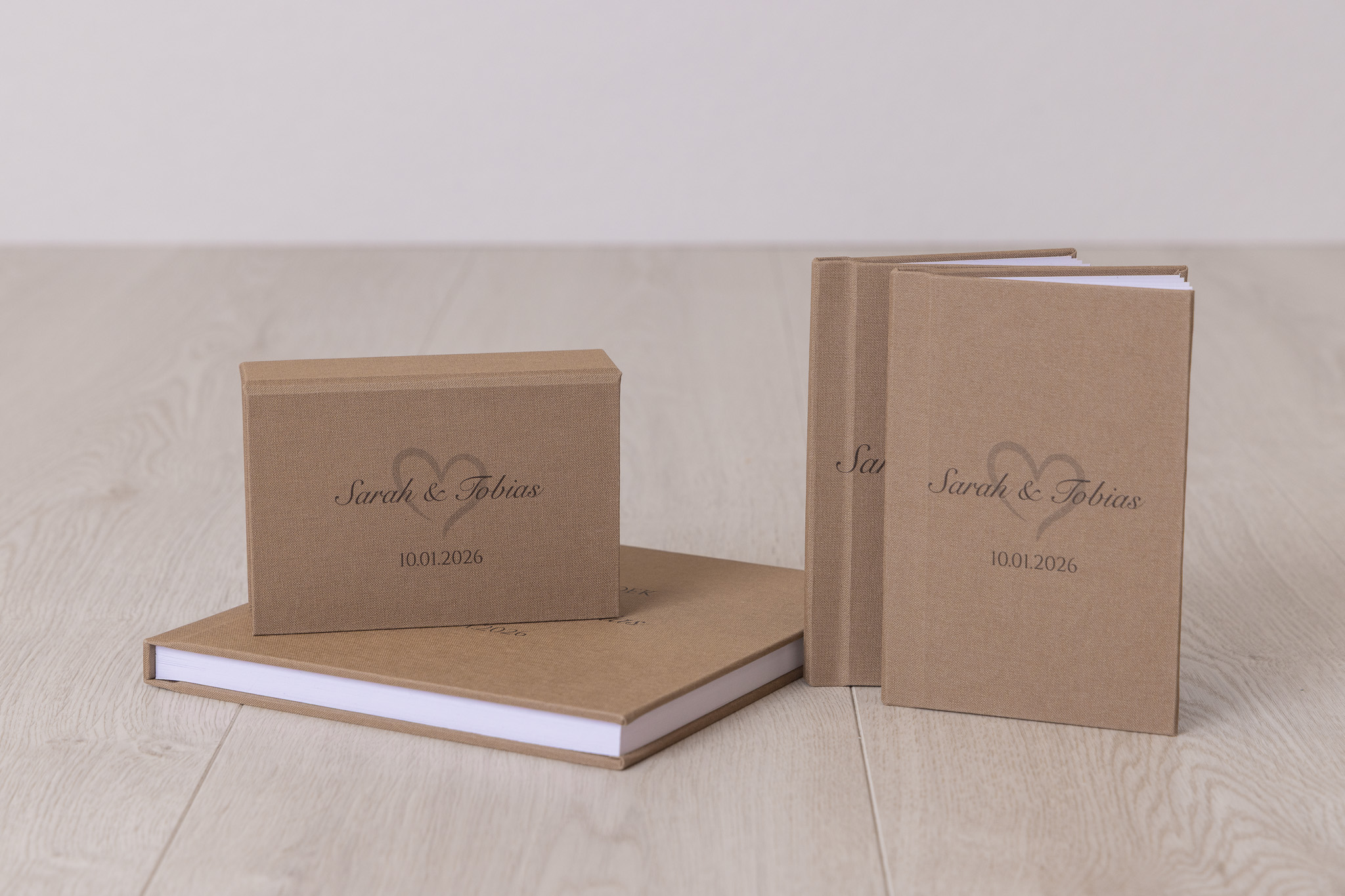 Met onze zorgvuldig samengestelde pakketten vormen alle details één geheel. Elk pakket bevat een gastenboek, bijpassende bewaarbox, een set geloftenboeken en een ringendoos – perfect op elkaar afgestemd in materiaal en uitstraling. Zo creëer je een harmonieuze en complete set waarin alle bijzondere momenten samenkomen en bewaard blijven.