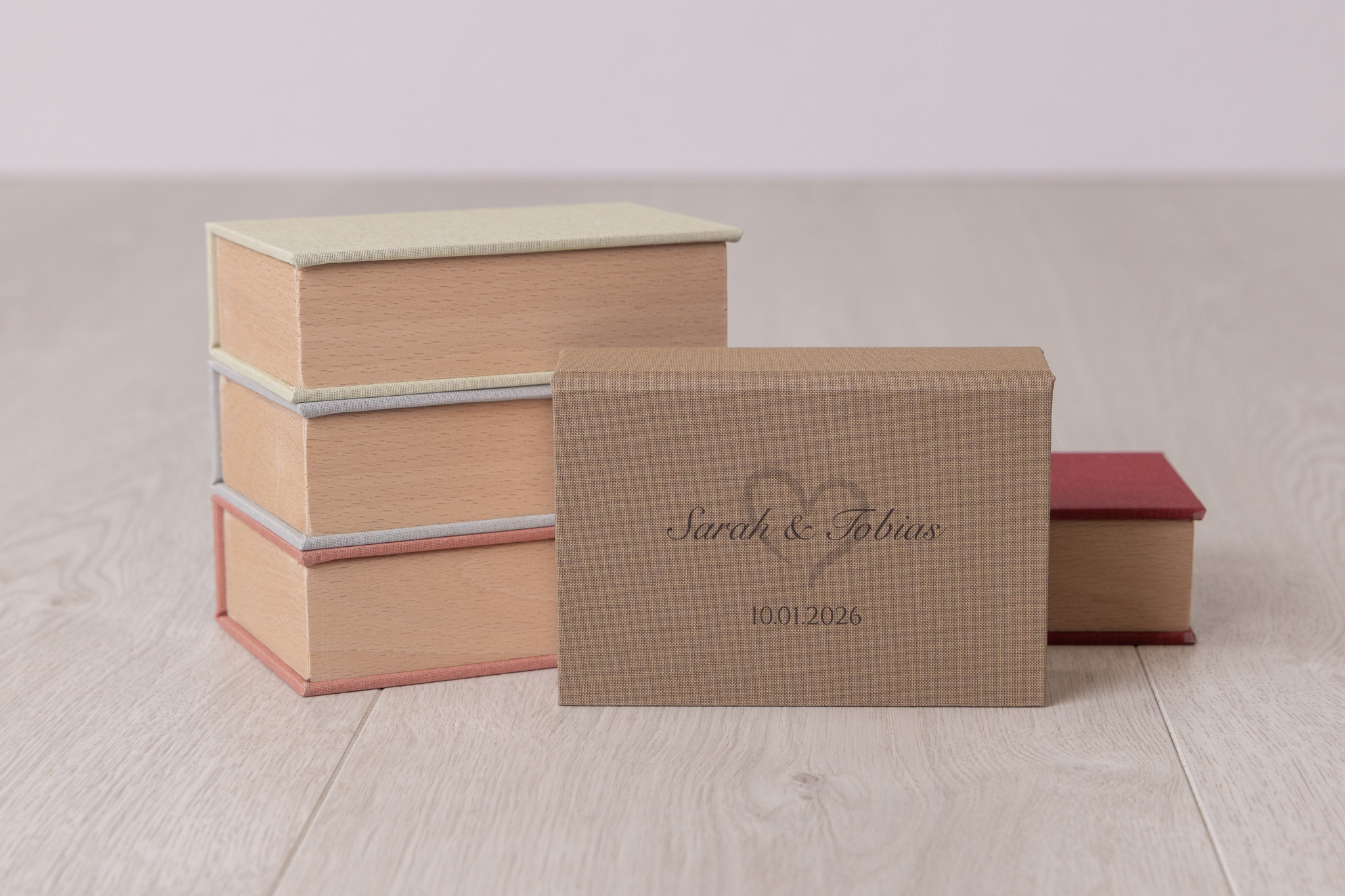Deze ringendoos in luxe linnen straalt rust en verfijning uit. De subtiele textuur geeft een natuurlijke, warme uitstraling en vormt een elegante omlijsting voor het uitwisselen van jullie ringen. Na de ceremonie blijft het een dierbaar aandenken aan dat ene bijzondere moment.