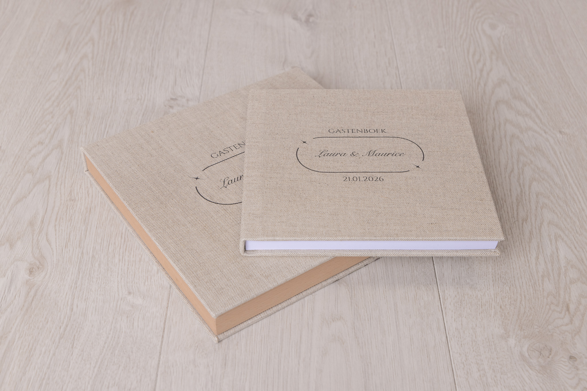 Leg de mooiste momenten vast in een gastenboek dat net zo bijzonder is als de herinneringen zelf. Met een luxe natuurlinnen kaft en stevige binding blijft het boek perfect openliggen, zodat vrienden en familie hun wensen, verhalen en herinneringen moeiteloos kunnen opschrijven. Verkrijgbaar in hoogwaardige varianten, ideaal voor bruiloften, jubilea, babyshowers en andere speciale gelegenheden.